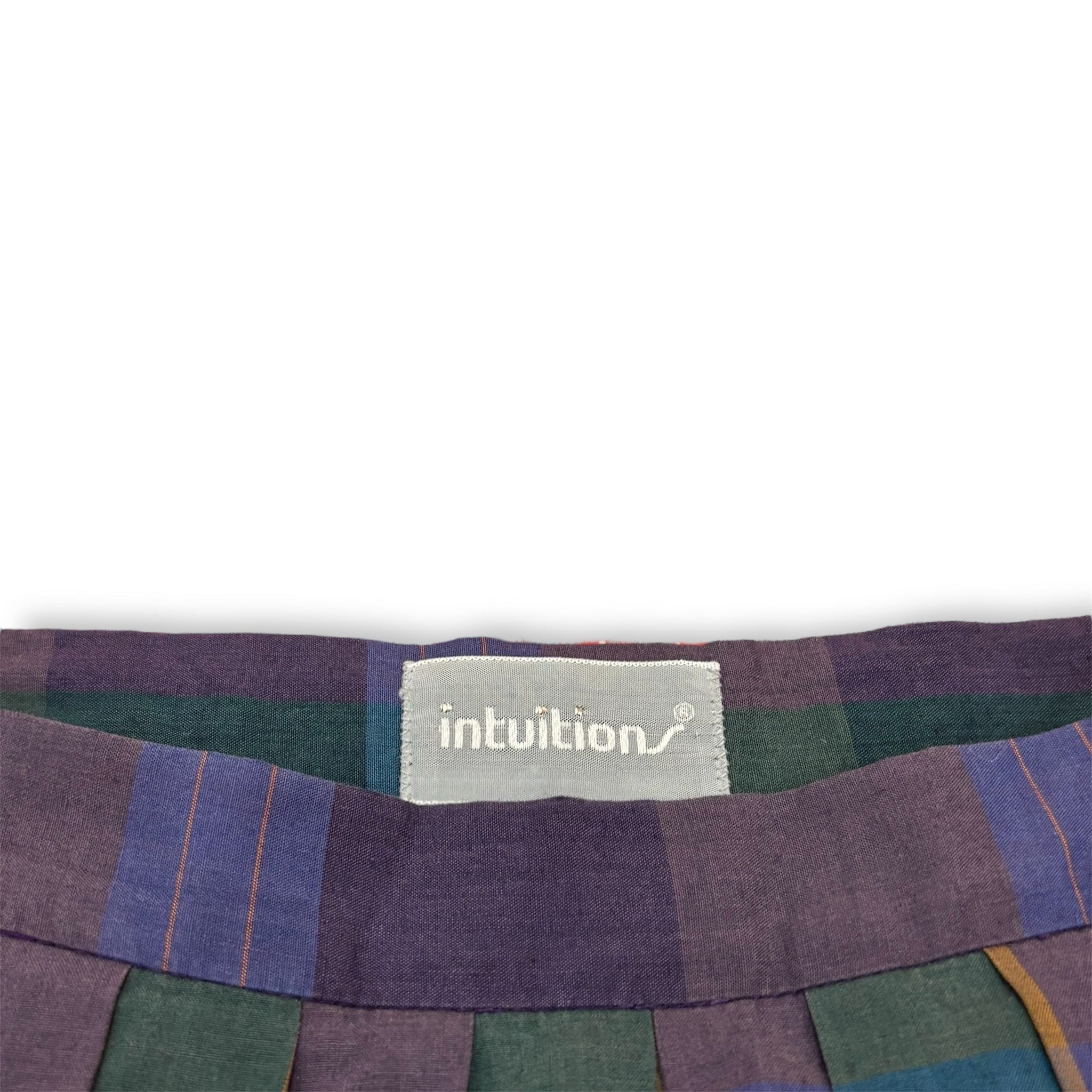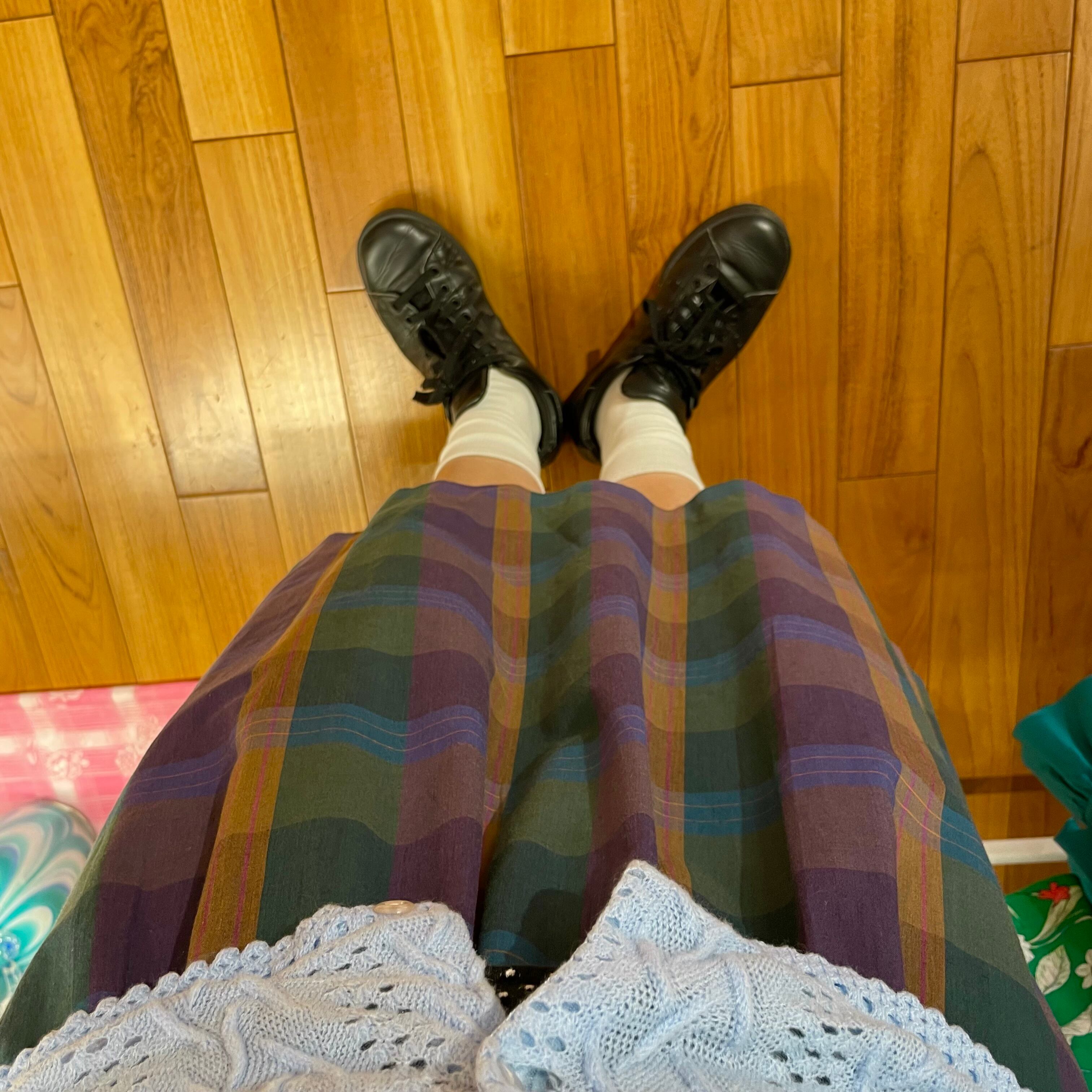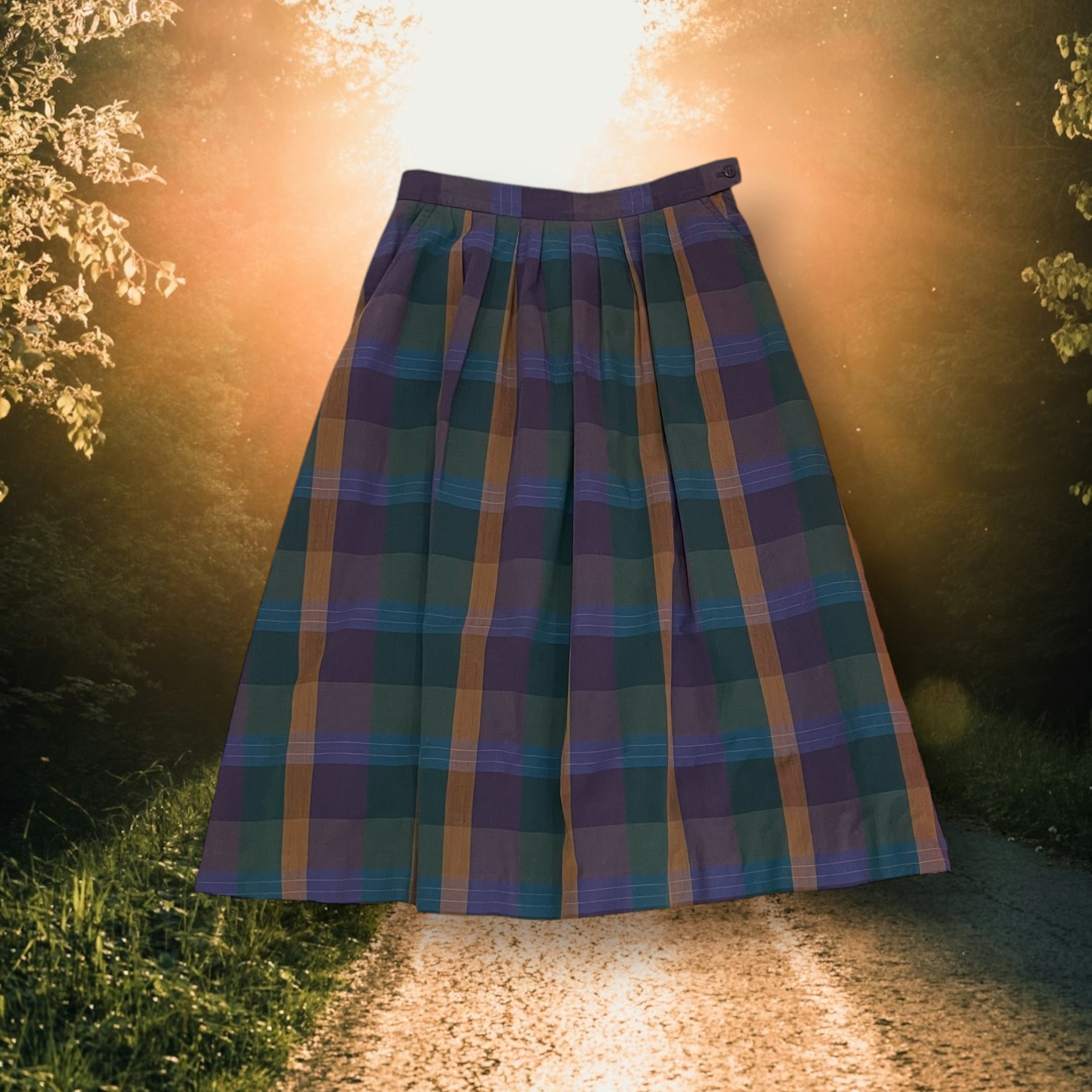 Purple and green midi-length checked skirt