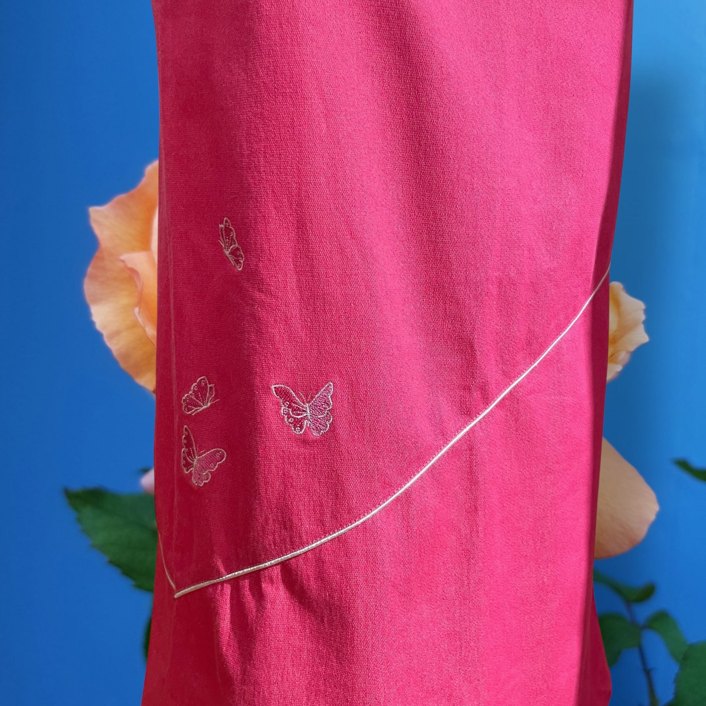 こちらは、もともと、色移りのあった部分にvintageのレースなどを縫い付けたりしてまた可愛く着れるようにした商品です。見える部分に目立ったシミやダメージは、ございませんが、そちらの旨ご了承いただけますと幸いです。