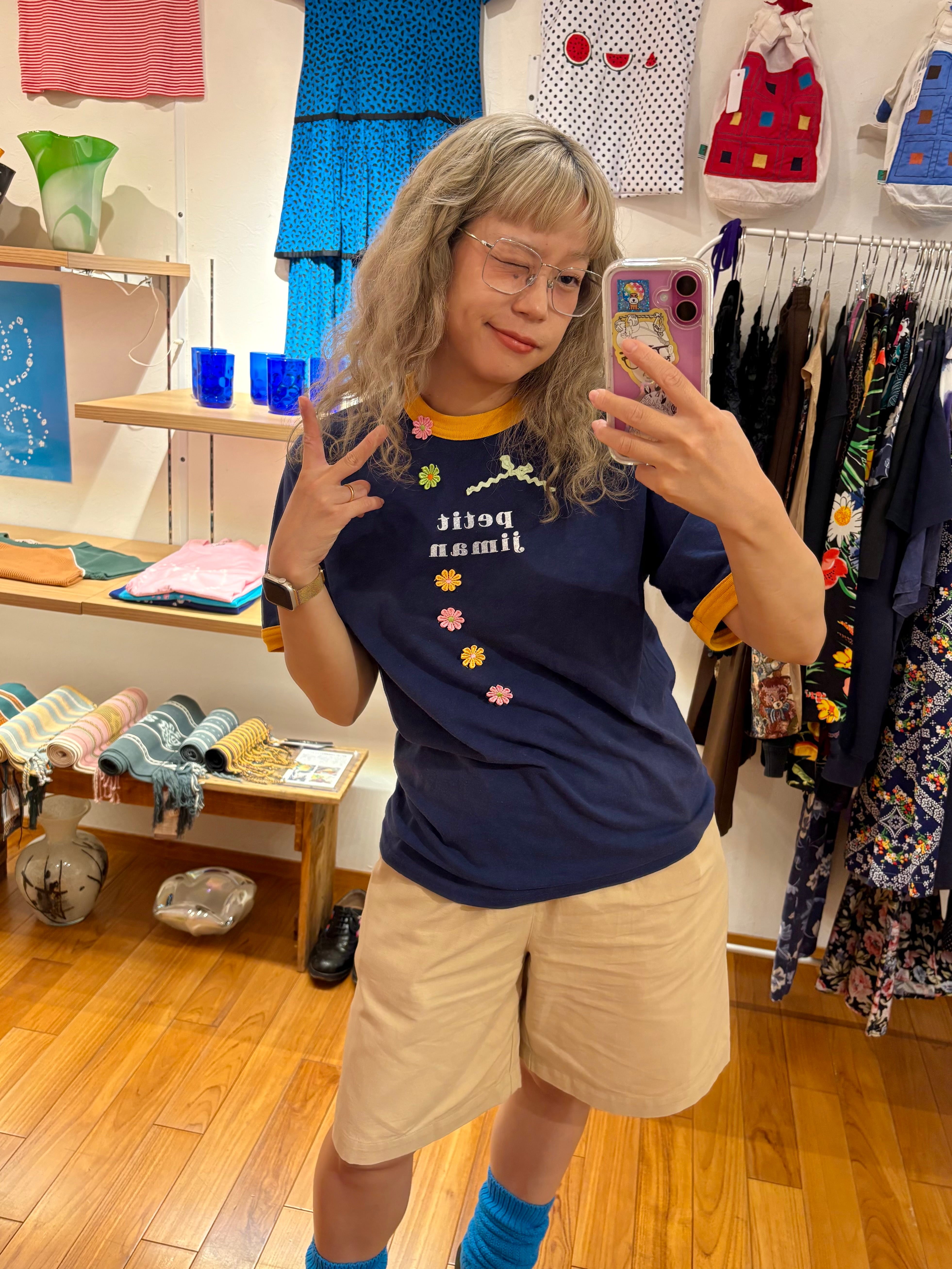 petitjiman original tee (logo/ringer tee navy and yellow)
