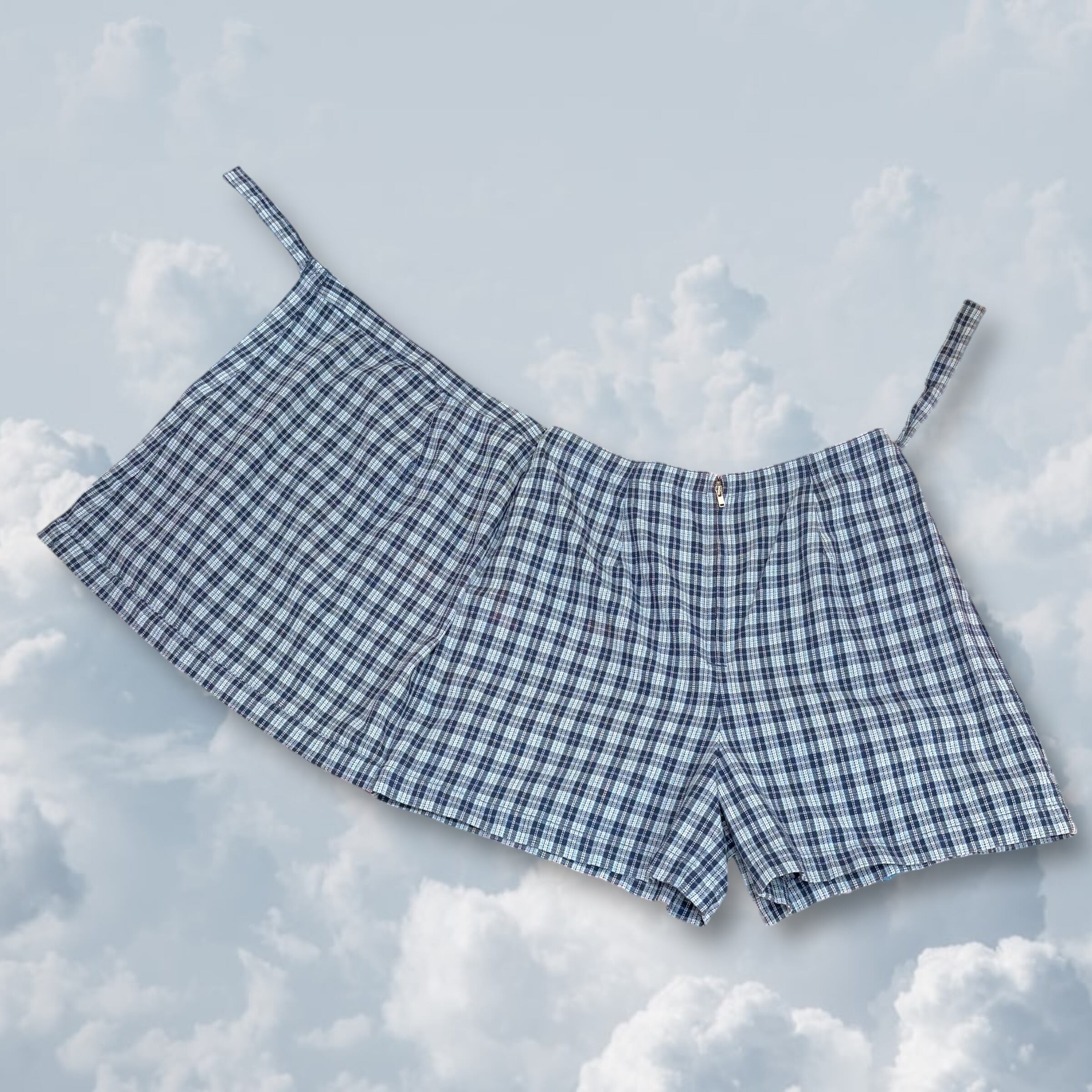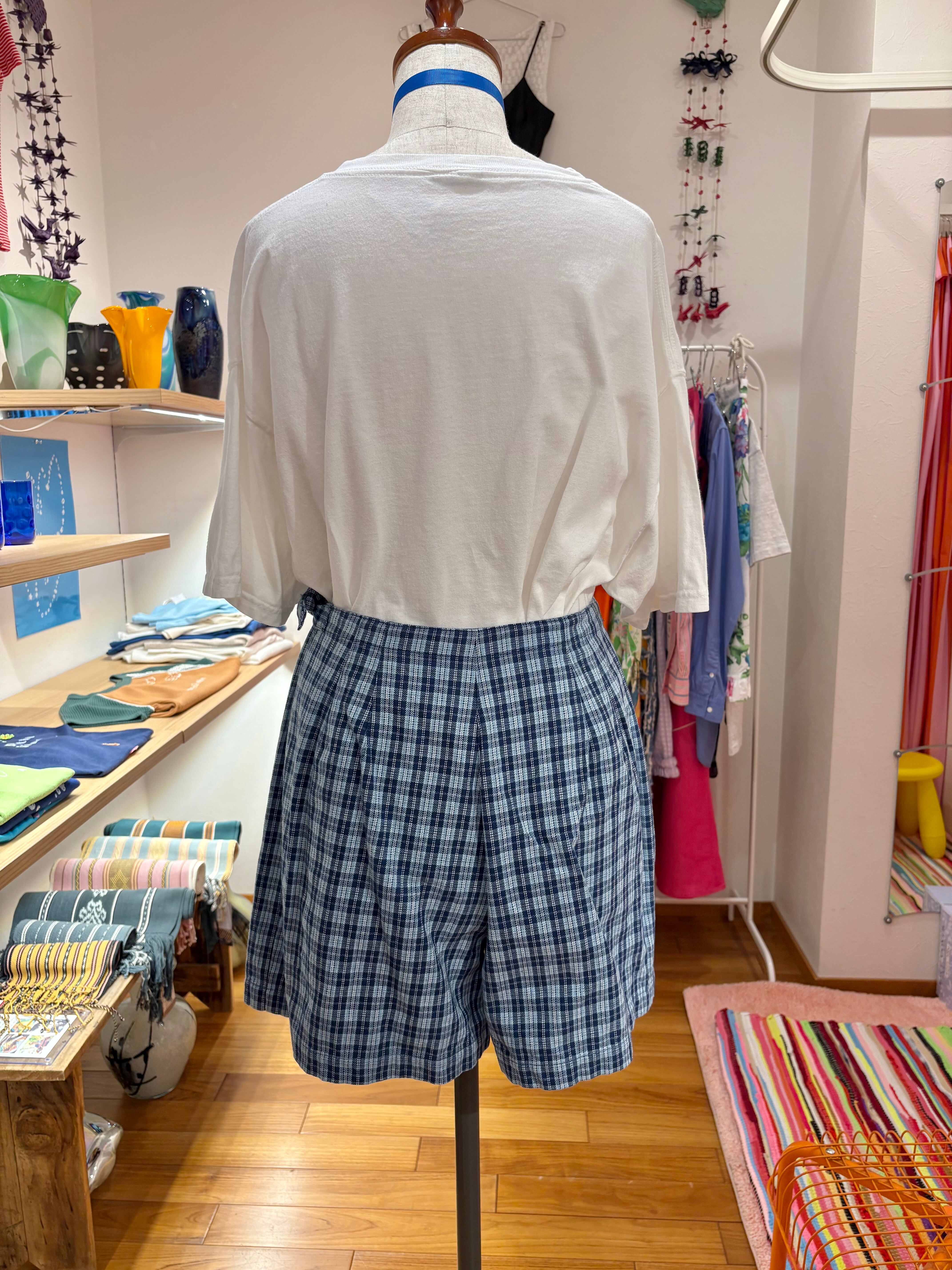 blue checked wrap culotte