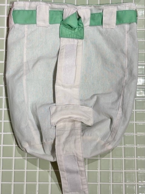 肩紐部分はマジックテープで長さが調節できるようになっており、紐を短めにして腕にかけたり、長めにして肩にかけたりすることができます。