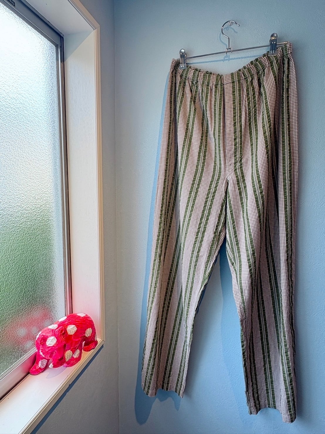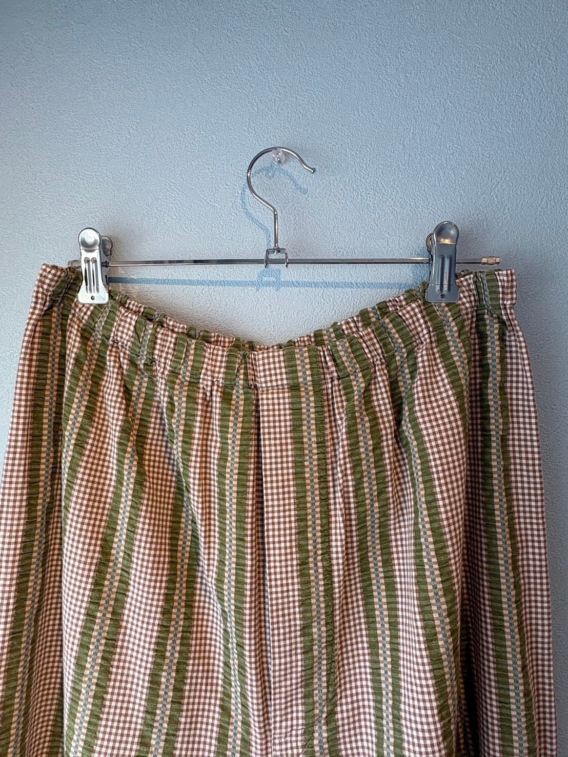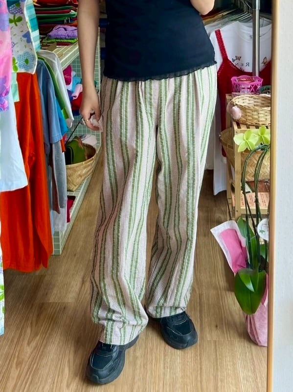 khaki and brown checked pajama pants