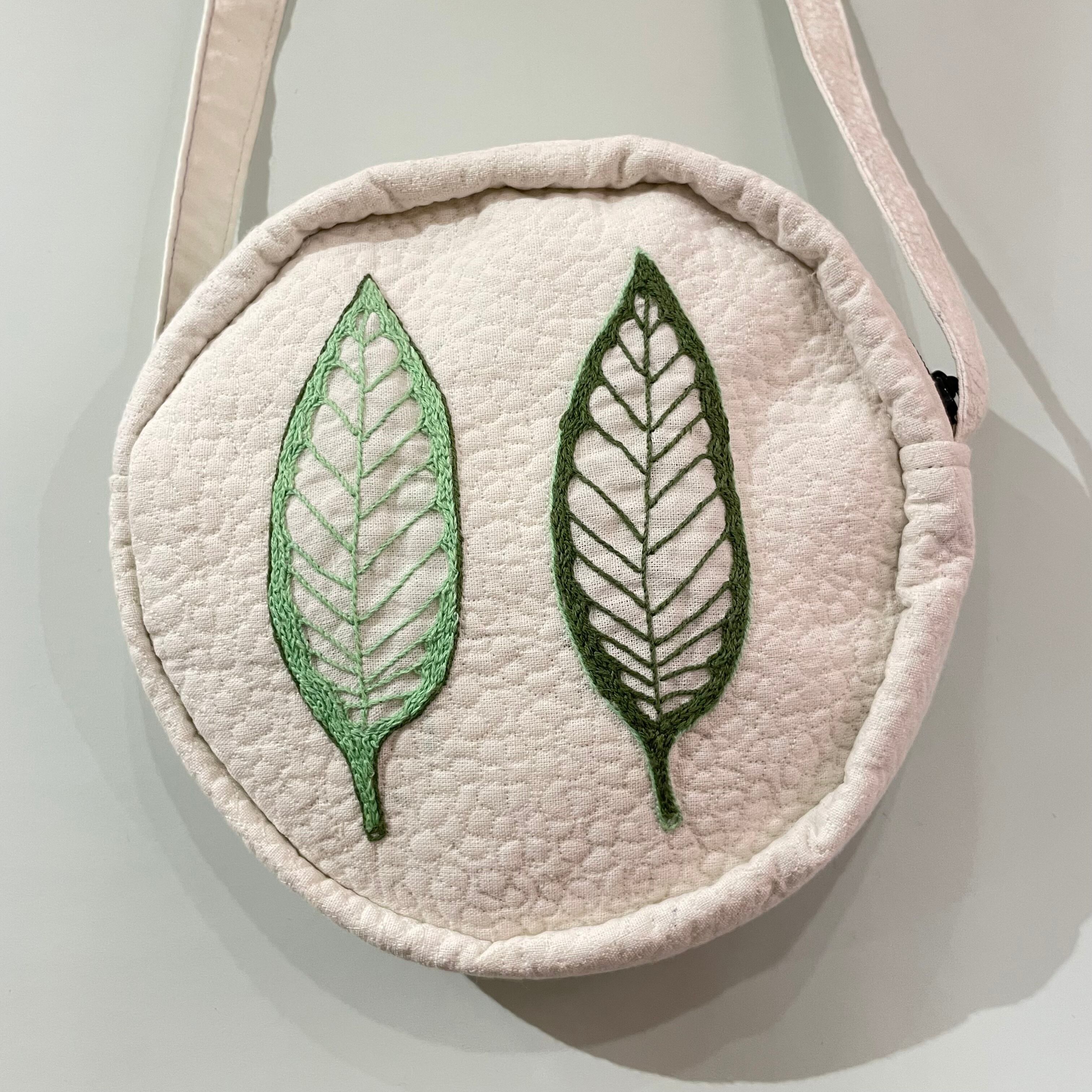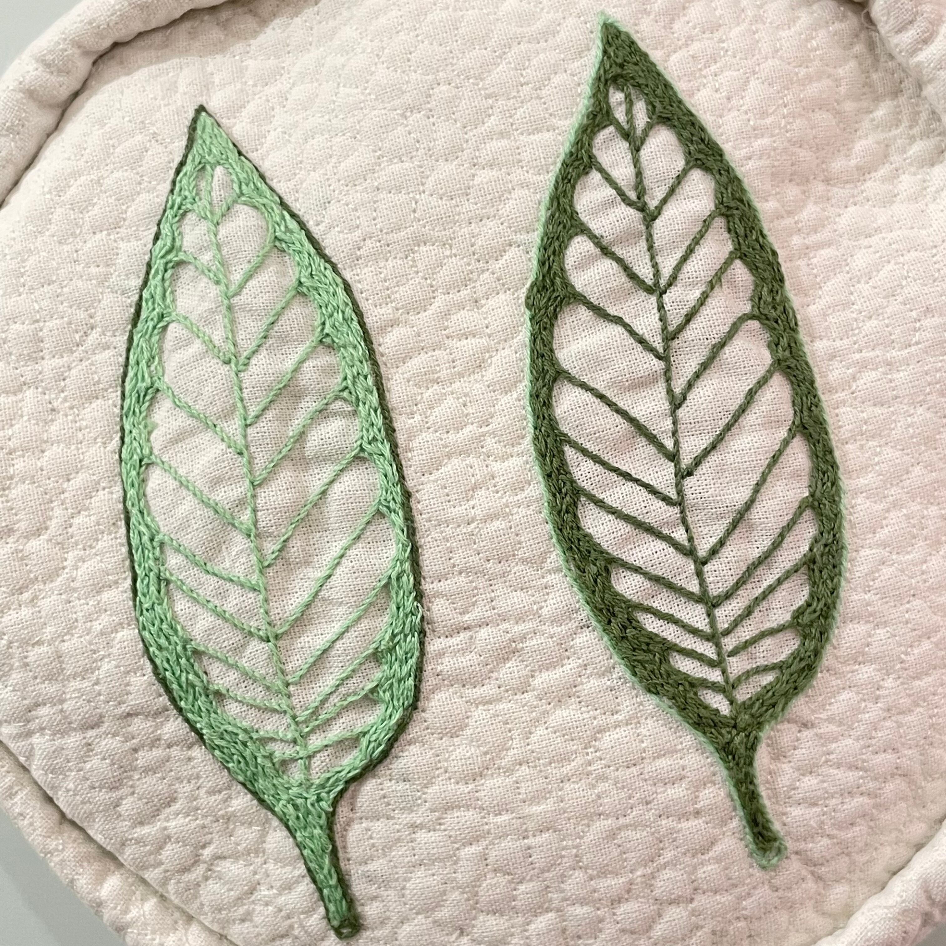 一針一針、足踏みミシンと手刺繍で柄を作っています。